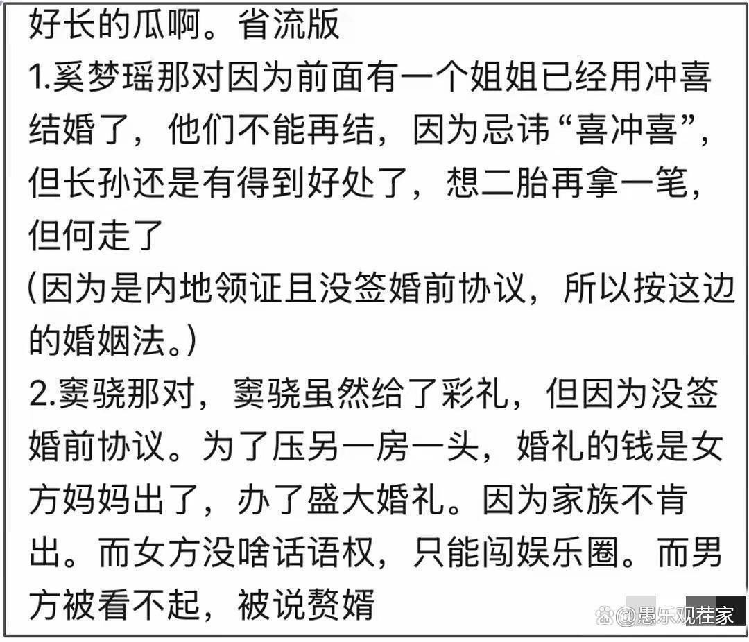 | 这瓜真是越吃越迷糊了!窦骁和何超莲这场婚变罗生门,又双叒叕迎来震撼弹!就在大家还在消化“正在备孕”的甜蜜剧情时,又有“知情网友”抛出全新剧本,信息量之大,直接颠覆了之前的所有叙事——合着之前骂何超莲家“算计”的,可能都骂错人了? ![]() 第一章:新剧本上线——彻底颠覆的“故事真相” 根据最新流传的网友爆料,整个事件的“真相”与我们之前所知的截然相反: “谁出的钱?”——根本性反转! 原剧本: 窦骁是“悲情男主”,掏空积蓄独自承担5000万-8000万婚礼,惨被掏空。 新剧本:婚礼实际上是何超莲的母亲,赌王三太陈婉珍出资操办的! 原因并非出于爱,而是为了在家族内部 “压四房一头” ,争夺面子和话语权。婚礼成了豪门房系间没有硝烟的战场。 ![]() “为啥不领证?”——核心矛盾转移! 原剧本: 何家严防死守,用“不领证”作为终极防火墙,算计窦骁。 新剧本:是窦骁本人不愿意签女方家族提出的“婚前协议”! 因为协议条款可能过于严苛,触及了男方的尊严和底线。由于协议没签,所以法律上的婚也就没结。 “谁是受害者?”——人设瞬间对调! 按照这个新剧本,窦骁从“人财两空的冤大头”,瞬间变成了 “宁折不弯、捍卫尊严的硬汉”。 而何超莲一家则从“精明的算计者”,变成了 “出钱出力却碰上一身傲骨女婿的无奈豪门”。 ![]() 第二章:风云回顾——一场舆论的“完美风暴” 让我们回顾一下,这场风波是如何一步步演变成全民热议的: 起点(向太点火): 向太陈岚的“勿下嫁”视频和点赞操作,是引爆一切的导火索。她提供的“男方耗尽财力”的细节,精准地塑造了窦骁的悲情形象,瞬间获得了全网同情。 发酵(线索佐证): 窦骁和何超莲长期分居、互动锐减、社交平台“身份切割”等一系列动作,完美契合了“婚变”的猜测,让向太的故事显得无比真实。 第一次反转(备孕登场): 当“正在备孕”的消息传出,舆论才开始冷静,意识到事情可能并非只有“婚变”一个版本。 而如今这个“女方出资、男方拒签协议”的爆料,则是在“备孕”基础上,对最初源头的彻底否定。 ![]() 第三章:深层解读——为何总有无穷的“反转”?” 这出戏之所以能反复反转,在于它触及了几个最能挑动公众神经的敏感点: 永恒的主题:“豪门”与“尊严”的较量。公众最爱看的,就是普通人(哪怕是明星)在面对巨额财富时,是选择低头还是昂首。之前的剧本是“尊严被财富碾压”,现在的新剧本是 “用尊严对抗财富规则” ,同样极具戏剧张力。 信息的黑箱:当事人永远的沉默。整件事最关键也最诡异的一点是:窦骁和何超莲本人,自始至终没有出来说过一句话。 所有的信息,无论是“婚变”、“备孕”还是这次的“女方出资”,全部来自“网友曝”、“知情人士说”。在一个没有官方信源的故事里,任何人都可以编写自己想要的剧本。 完美的“剧本”容器:豪门内斗。“压四房一头” 这个细节,虽然无法证实,但它为整个事件提供了一个无比合理的“豪门动机”。它让一场婚姻不再是两个人的私事,而是家族政治的一步棋。这满足了外界对豪门内部勾心斗角的所有想象。 ![]() 到头来,我们可能并不在乎窦骁和何超莲到底有没有离婚,或者谁出了婚礼的钱。我们在乎的,是这出戏是否足够跌宕起伏,是否投射了我们自己对爱情、金钱、尊严的复杂态度。 每一次“反转”,都是不同价值观在同一个八卦事件上的碰撞。有人坚信“豪门无情”,所以会相信第一个剧本;有人崇尚“尊严无价”,所以会倾向于第二个剧本。 这场大戏,从一场简单的婚变传闻,演变成了一个罗生门式的社会观察实验。在当事人亲自下场官宣之前,所有的“真相”都只是符合某种心理预期的“故事版本”。 所以,让子弹再飞一会儿吧。毕竟,按照这个趋势,保不齐明天一早,又会有全新的、更匪夷所思的剧本等着我们呢。#第27期娱乐热点剧评社#举报/反馈 |